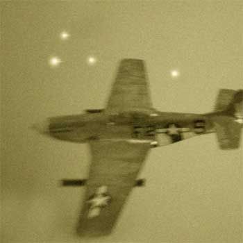 | Caza de la USAF con "foo fighters" al fond. |